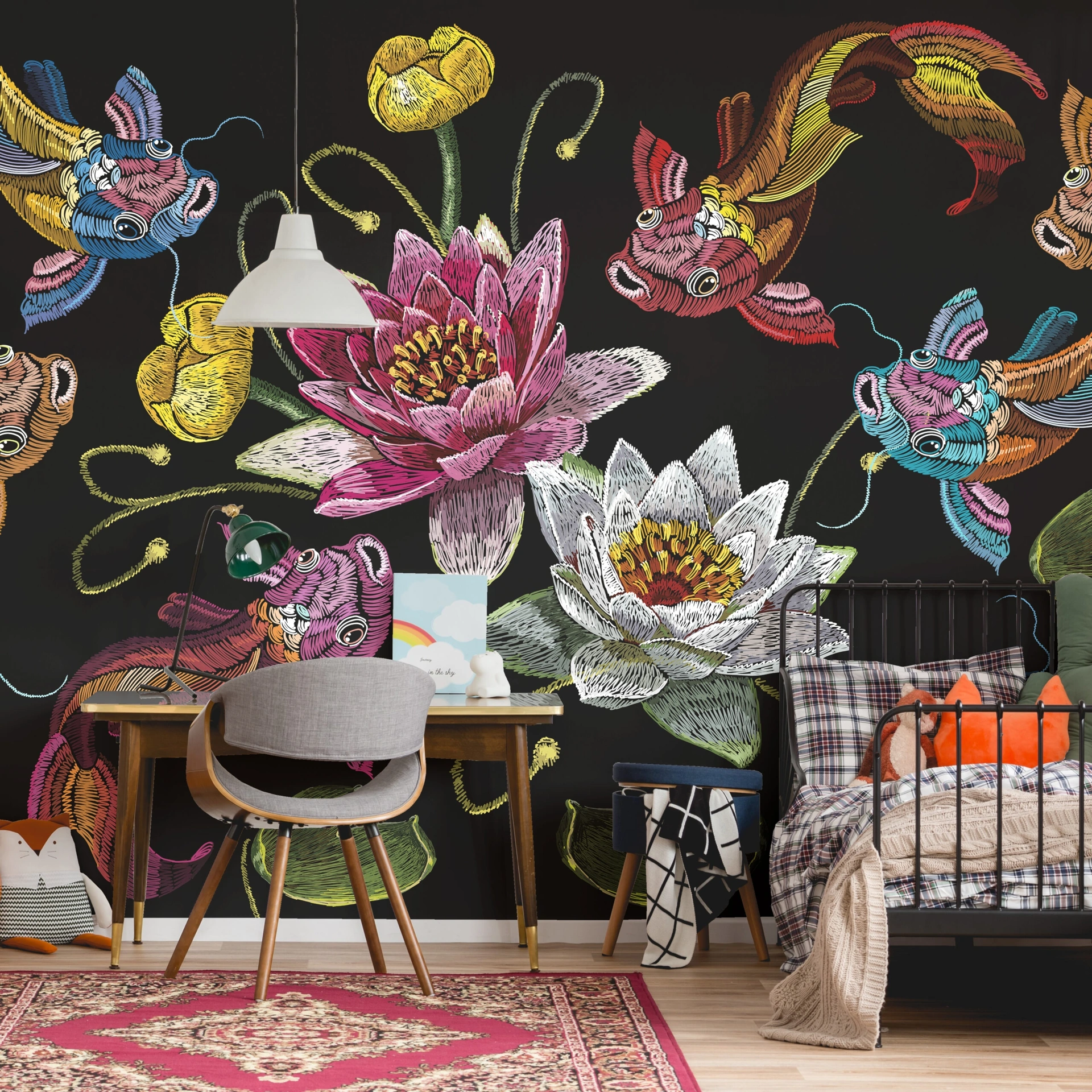 La Carta da parati moderna va scelta seguendo una certa coerenza di stile con il resto dell'arredamento, per arricchire gliambienti domestici perfettamente. Dopo aver scelto la Carta da parati vinilica che fa per te, tieni presente che l'effetto finale deve essere sempre equilibrato con l'estetica del resto dell'arredo. Questa soluzione è ideale per una stanza moderna: il soggetto evoca peculiari sensazioni e decora gliambienti domestici in modo equilibrato con i restanti pezzi di arredo. La Carta da parati Japanese Pond di Pintdecor disponibile nel nostro punto vendita, si affianca ai molteplici prodotti del brand, sinonimo di eccellenza nel settore.
