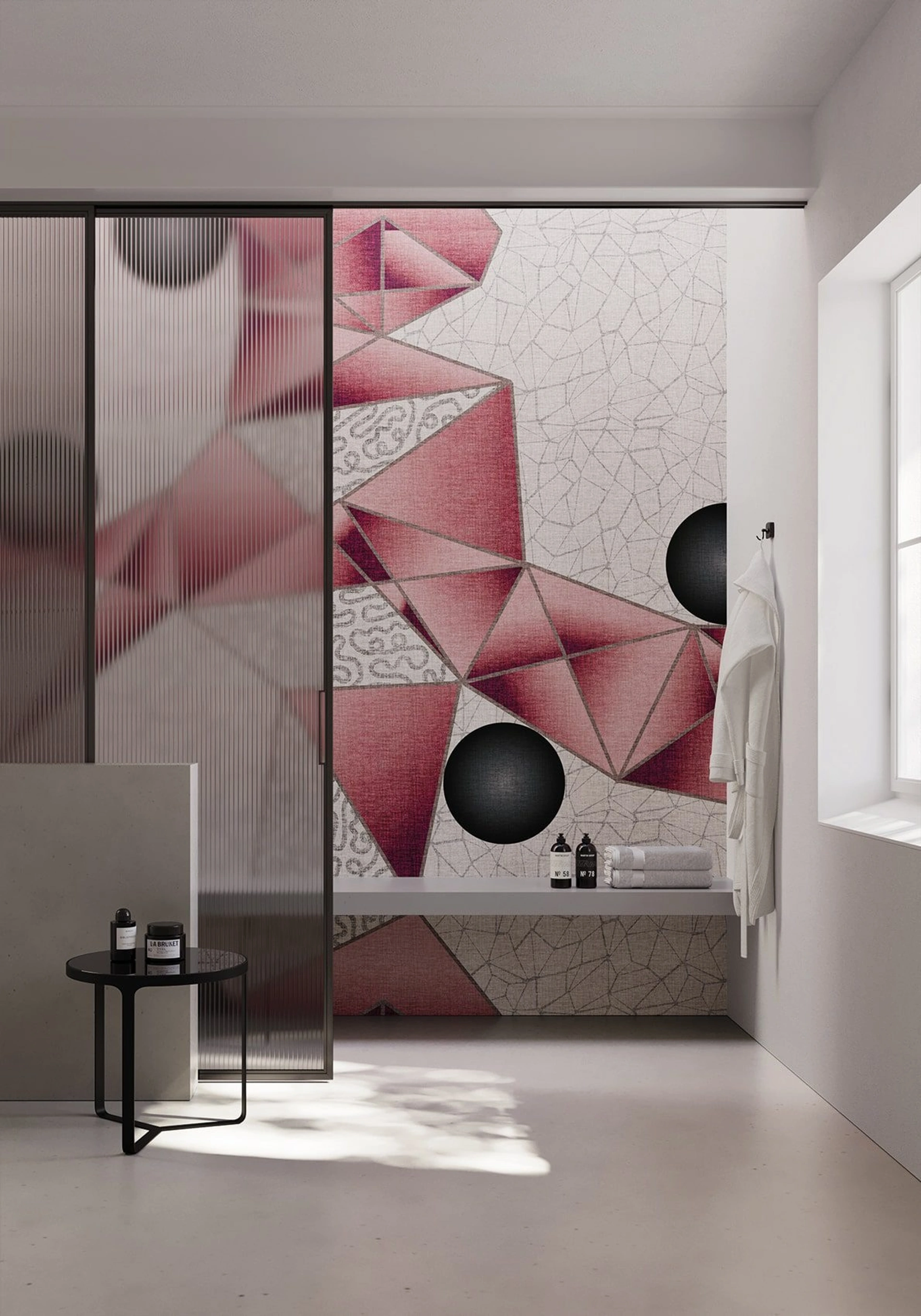 La carta da parati Nori di Instabilelab presenta un design geometrico dinamico, con un'interazione precisa di triangoli e cerchi che conferiscono un'estetica vibrante agli spazi. La composizione delle forme è studiata per bilanciare l'impatto visivo, generando un'atmosfera che invita alla serenità. Le configurazioni grafiche sono interamente personalizzabili, offrendo la possibilità di stampa su supporti tecnici specifici come New Middle, Cross, Green, Fibratex e Sonora, garantendo versatilità applicativa e durabilità. Questa soluzione d'arredo rappresenta un'opzione altamente funzionale e stilisticamente raffinata, progettata per integrarsi con precisione in diversi contesti abitativi e professionali.