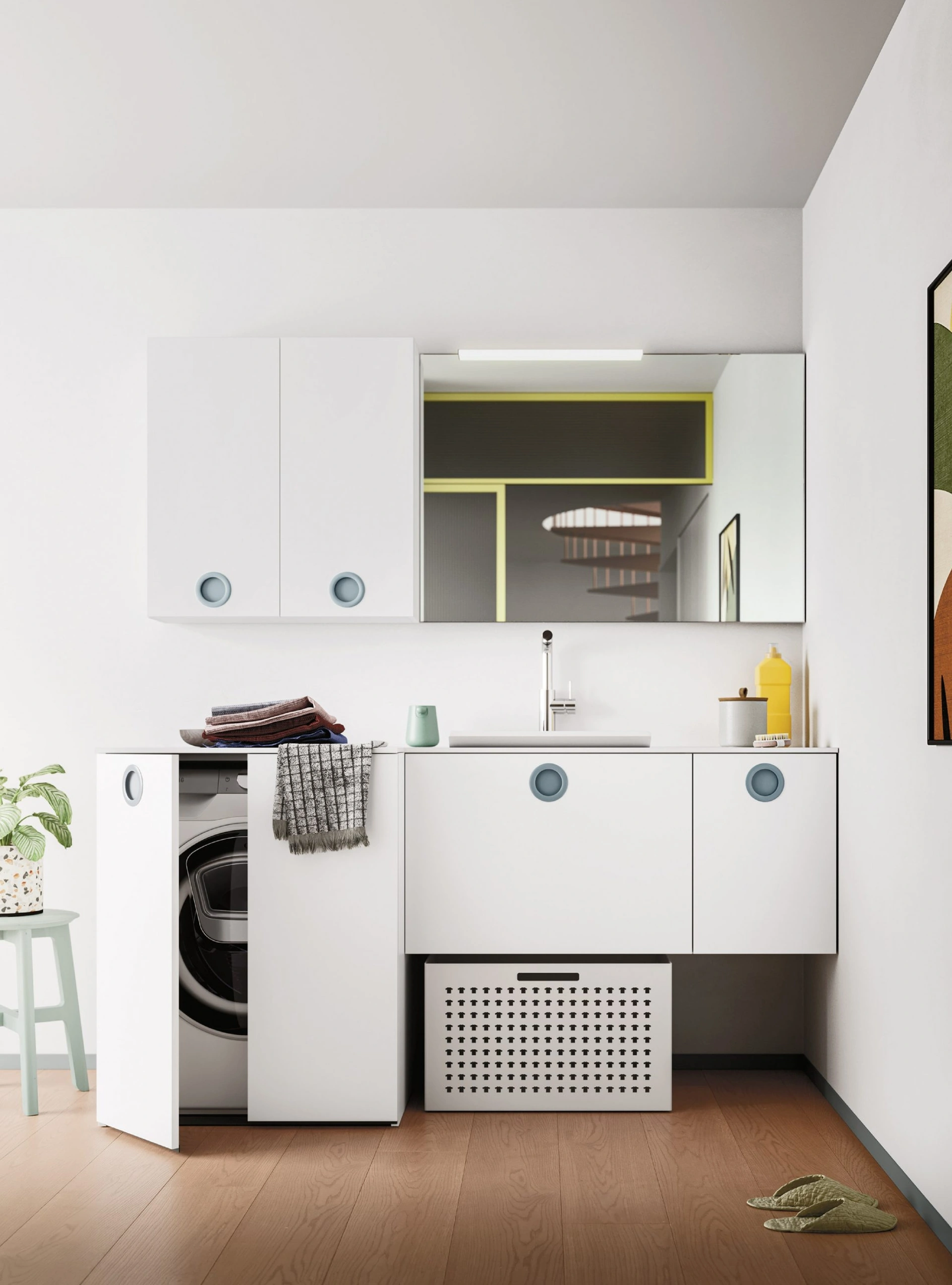 Finiture innovative e una ricca varietà cromatica assicurano una personalizzazione massima e materiali di qualità che resistano a disparate sostanze. In negozio potrai toccare con mano le più originali composizioni arredative del noto e rinomato brand: ti attendiamo per arredare insieme il bagno di casa. Esteticamente apprezzabile e indispensabile in ogni stanza da bagno, un modello in laccato opaco moderno come quello nell'immagine risolverà le tue problematiche abitative di ogni genere. Arbi produce soluzioni per l’Arredo Bagno moderno con mobili bagno per lavanderia che uniscono design unico e funzionalità, come questo interno vuole. Il modello Mobile da Bagno per lavanderia Bolle 08 di Arbi in laccato opaco è appartenente alla vasta serie di arredi per il bagno della firma, sempre di charme.