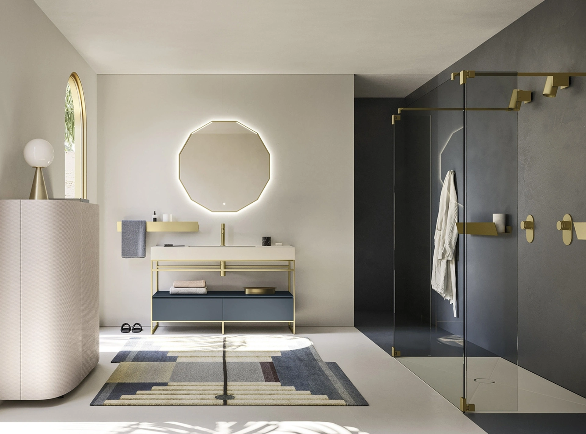Il mobile bagno Code 06, espressione della collezione Code di Arbi Arredobagno, incarna un design contemporaneo di sofisticata personalizzazione. La sua distintiva architettura si evidenzia nel taglio a 45° su fianchi e frontali, integrando una maniglia discreta per un'estetica lineare e raffinata. La flessibilità modulare del sistema consente configurazioni adattabili a molteplici contesti spaziali. Una vasta selezione di finiture, che include laccati opachi e velvet, essenze di rovere naturale, eucalipto opaco, e versioni laccate o rovere con texture Riga, offre soluzioni versatili per ambienti sia moderni che tradizionali. La meticolosa selezione dei materiali assicura durabilità e un'estetica raffinata, con un'ampia palette di finiture per ogni esigenza progettuale.