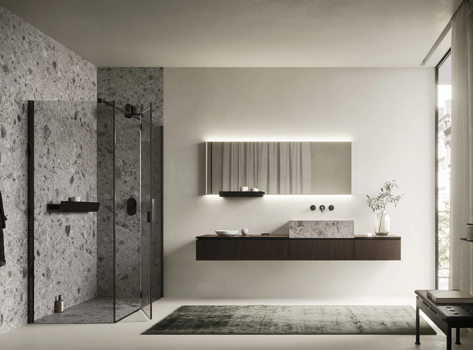 | Materiale: | Legno di eucalipto, Legno di rovere, Laminam Emperador, Ceramica, Laccato opaco, Laccato velvet, Gres Iseo Abujardado, Alluminio Nero |