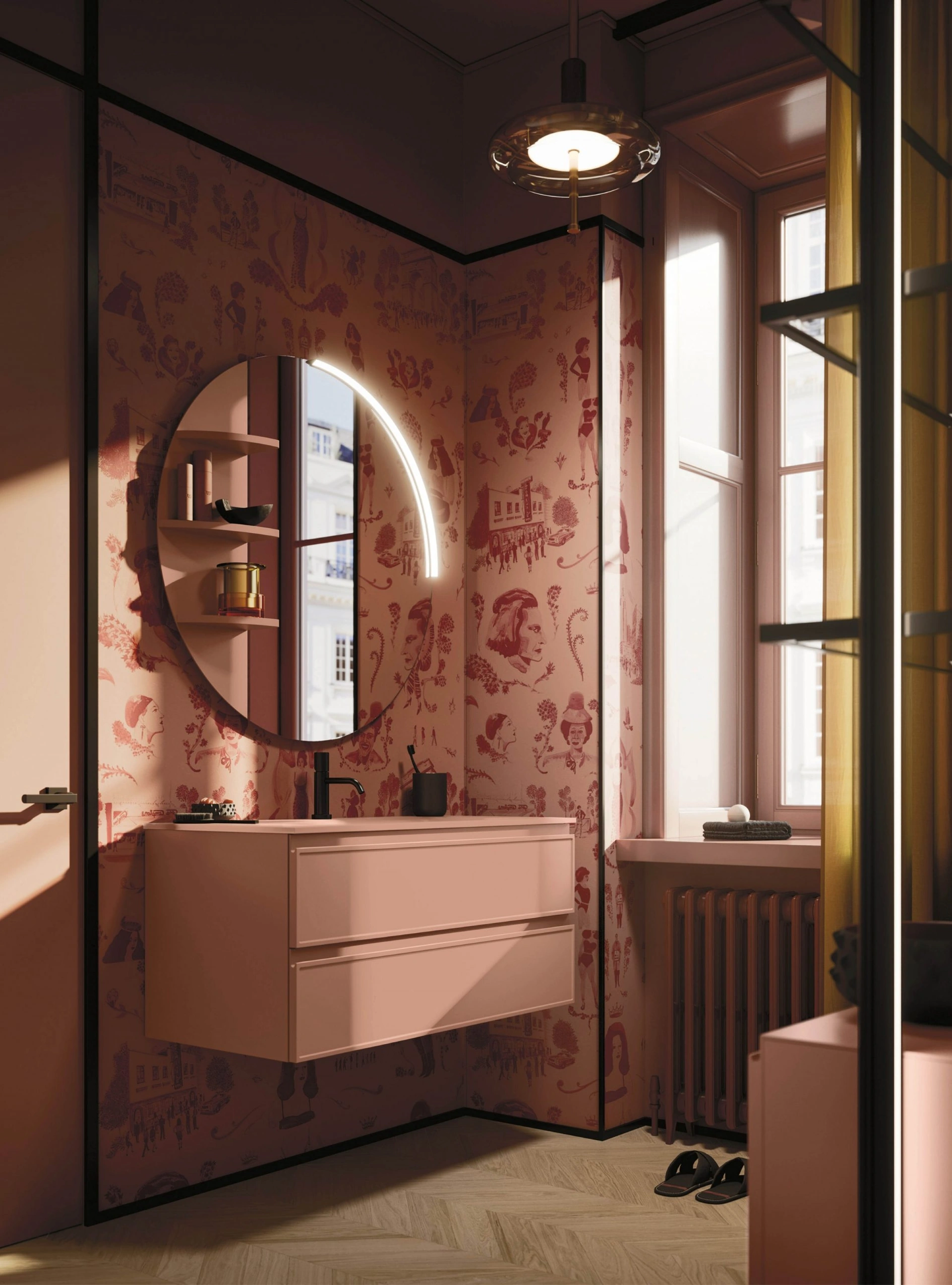 Il mobile bagno Decor Pink palette di Arbi Arredobagno, un'innovazione della nuova collezione, si distingue per la sua anta integrata dotata di presa maniglia J. Questo dettaglio funzionale si unisce a un design ricercato, caratterizzato da un esclusivo decoro sul frontale che conferisce un'eleganza distintiva all'ambiente bagno. La finitura laccato opaco e le dimensioni di 105 cm in larghezza per 50 cm di profondità definiscono una soluzione d'arredo versatile e di alta qualità. La combinazione di design italiano e l'impiego di materiali selezionati garantiscono prestazioni eccellenti e una durabilità intrinseca, elementi fondamentali per un investimento di valore nel tempo.