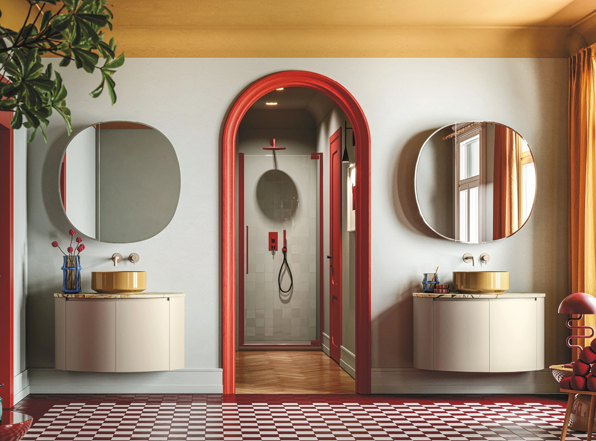 La serie Fusion 41 di Arbi Arredobagno si caratterizza per un design innovativo e funzionale. Le sue linee fluide e curve si integrano con la precisione geometrica di colonne e moduli a giorno, creando un equilibrio visivo e strutturale unico nel suo genere. Questa specifica configurazione offre una larghezza di 178 cm (ottenuta da moduli 89 + 89 cm) e una profondità versatile, compresa tra 37 e 50 cm, ottimizzando l'utilizzo dello spazio. È progettata per una perfetta integrazione con lavabi Smart 38, rubinetteria Geko e specchiere Almond, consentendo la creazione di un ambiente bagno altamente personalizzabile e coerente, capace di adattarsi a diverse esigenze stilistiche e funzionali. La selezione materica è curata nei minimi dettagli, includendo legni pregiati (ingegnerizzato, laminato, truciolare nobilitato, olmo), materiali sintetici avanzati come melamina, Ocritech e Fenix-NTM®. Le finiture spaziano dai marmi naturali (Calacatta Oro, Rojo Levanto, Fior di Pesco Carnico) alla quarzite, passando per ceramiche tecniche come gres porcellanato e Laminam®, oltre a rivestimenti in pelle ed ecopelle, garantendo durabilità e un'estetica raffinata. Per una comprensione approfondita delle caratteristiche tecniche e delle molteplici finiture disponibili, invitiamo a consultare la documentazione tecnica o a richiedere una consulenza specialistica.