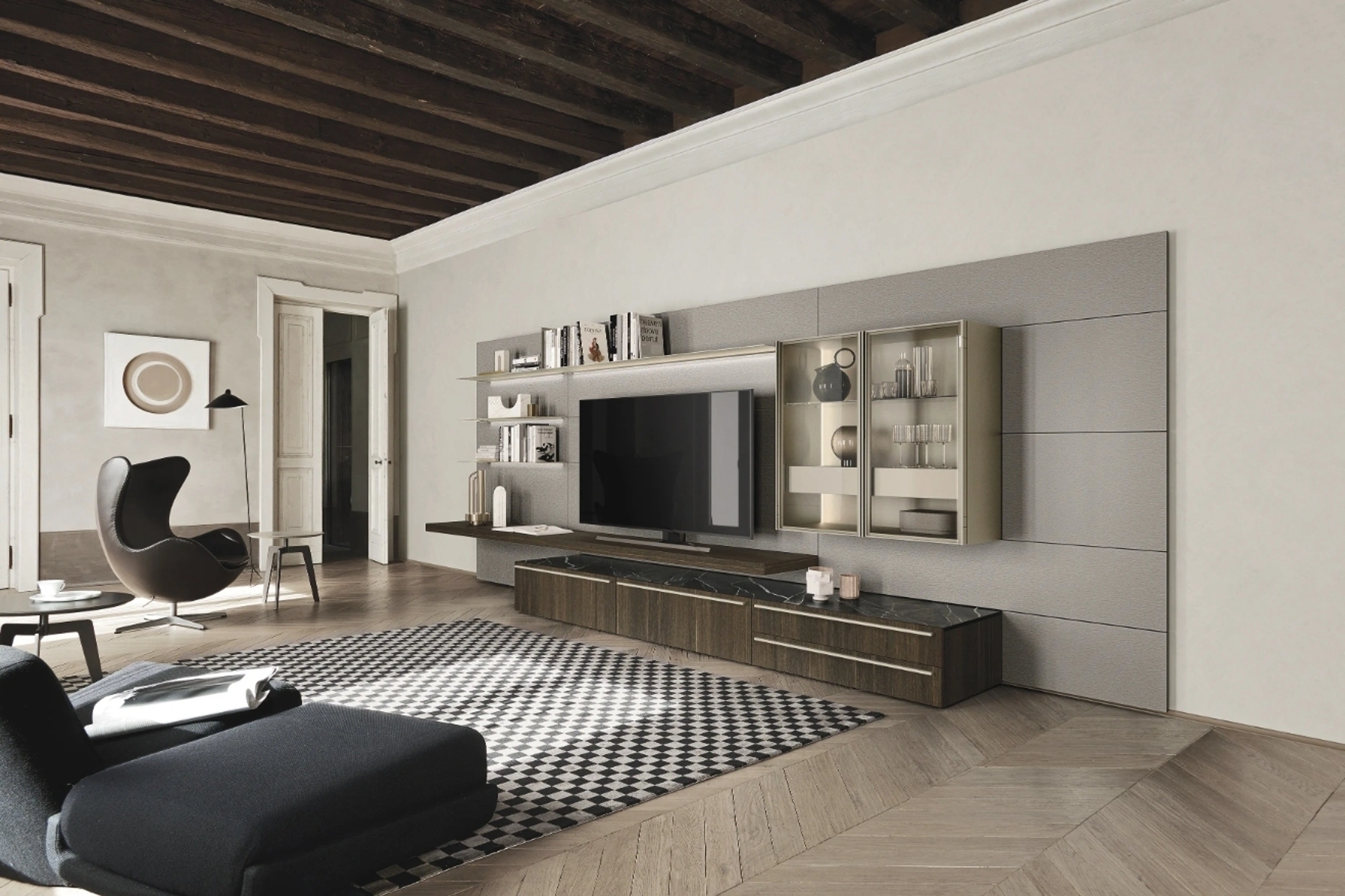 Questa parete attrezzata è una delle soluzioni della firma e ti permetterà di ammobiliare il living seguendo le più personali esigenze abitative. Per informazioni e preventivi sulla Parete Attrezzata Lampo 198 di Sangiacomo in foto contattaci! Il modello proposto è realizzato in legno, ma grazie ad una vasta scelta di texture, cromie e forme, potrà adattarsi a stili di ogni genere. Attraverso un gioco dinamico di accostamenti fra elementi a giorno o vani chiusi, le Pareti Attrezzate moderne arredano il soggiorno valorizzando ogni spazio.