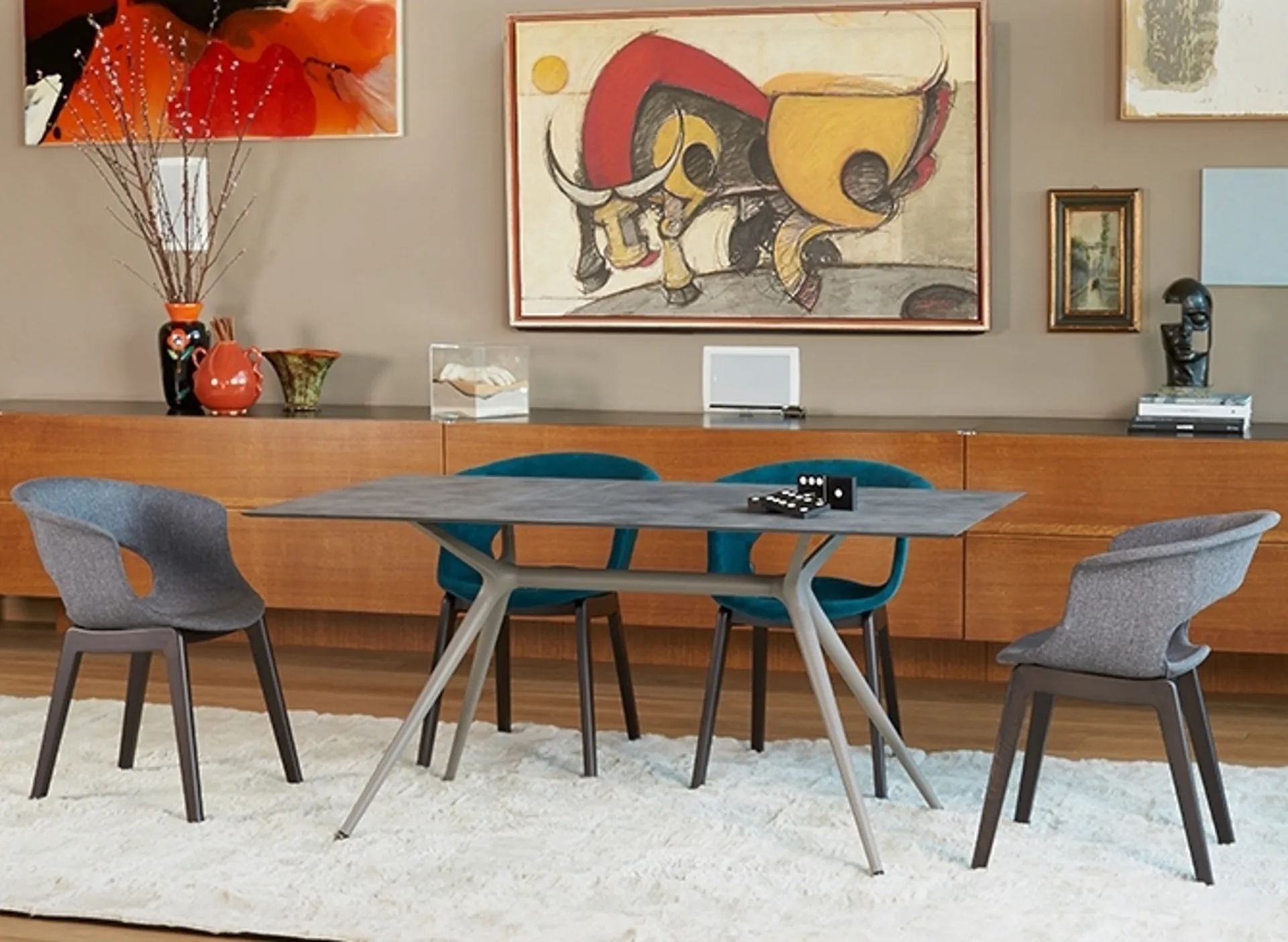 Se vuoi rinnovare i mobili moderni che hai in casa o comprarli ex novo, da noi potrai visionare in prima persona le soluzioni più belle sul mercato. Nel nostro sito dedicato all'Arredamento Casa potrai trovare tutto ciò di cui necessiti per il living o la zona cucina. Durante la scelta del tavolo ideale per te occorre valutare misure, forme, finiture e stile, per ottimizzare lo spazio con un ottimo effetto estetico. In showroom ti attende una ricca gamma di Tavoli fissi delle migliori marche, tra cui anche il modello da pranzo mostrato in foto.